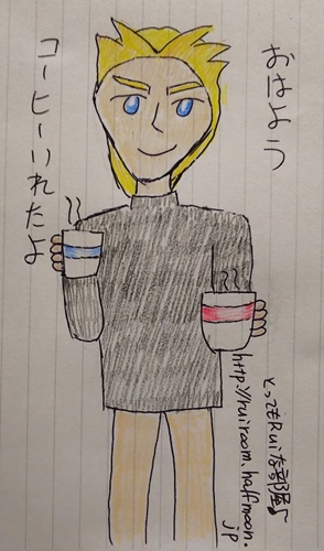 こちらは「夜明けのコーヒー」の仮絵として描いたものです。