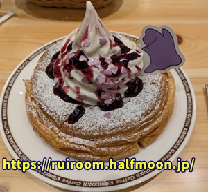 ブルーべリーのソースがかかってて、ハート形のチップがかかってました。